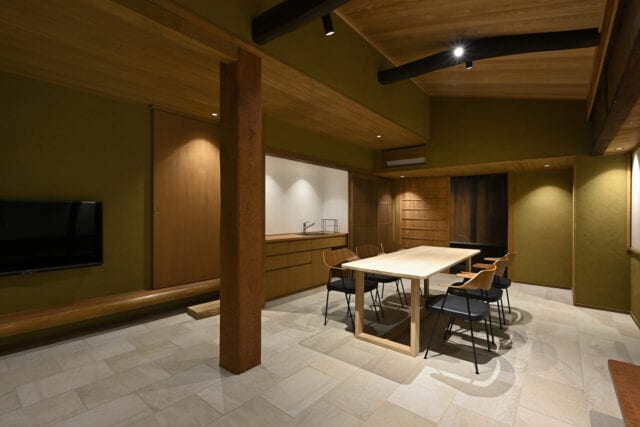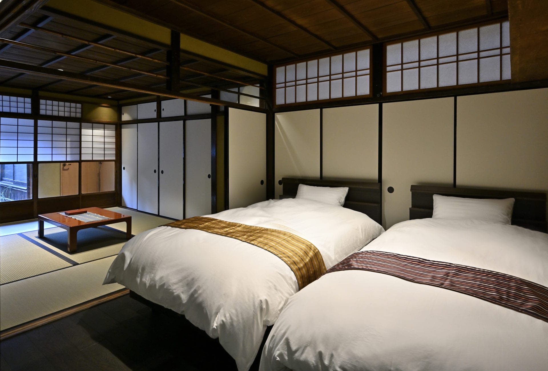 东栋和西栋都是国家注册的有形文化遗产,住宿设施的东栋是建于明治初期的传统町家,其虫笼窗和格子窗等原封不动地保留了当时的风貌。住宿设施在其东栋的1楼部分,为了方便起居,对起居室/餐厅、盥洗室和浴室进行了改装,但内室和卧室等仍原封不动地保留了当时的构造和风情,欣赏可以看到设有库房和茶室的庭院的同时,感受时光的静谧流淌。